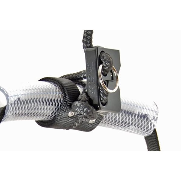 The nose band can be adjusted so that it is positioned close to the bridge of the horse’s nose. This is a very important feature because when working out of low stall door fronts the adjustable rope and cleat system is required to be as close to the bridge of the nose as possible so that there is enough vertical height remaining to raise the horse’s head enough to visualize the dental procedure.